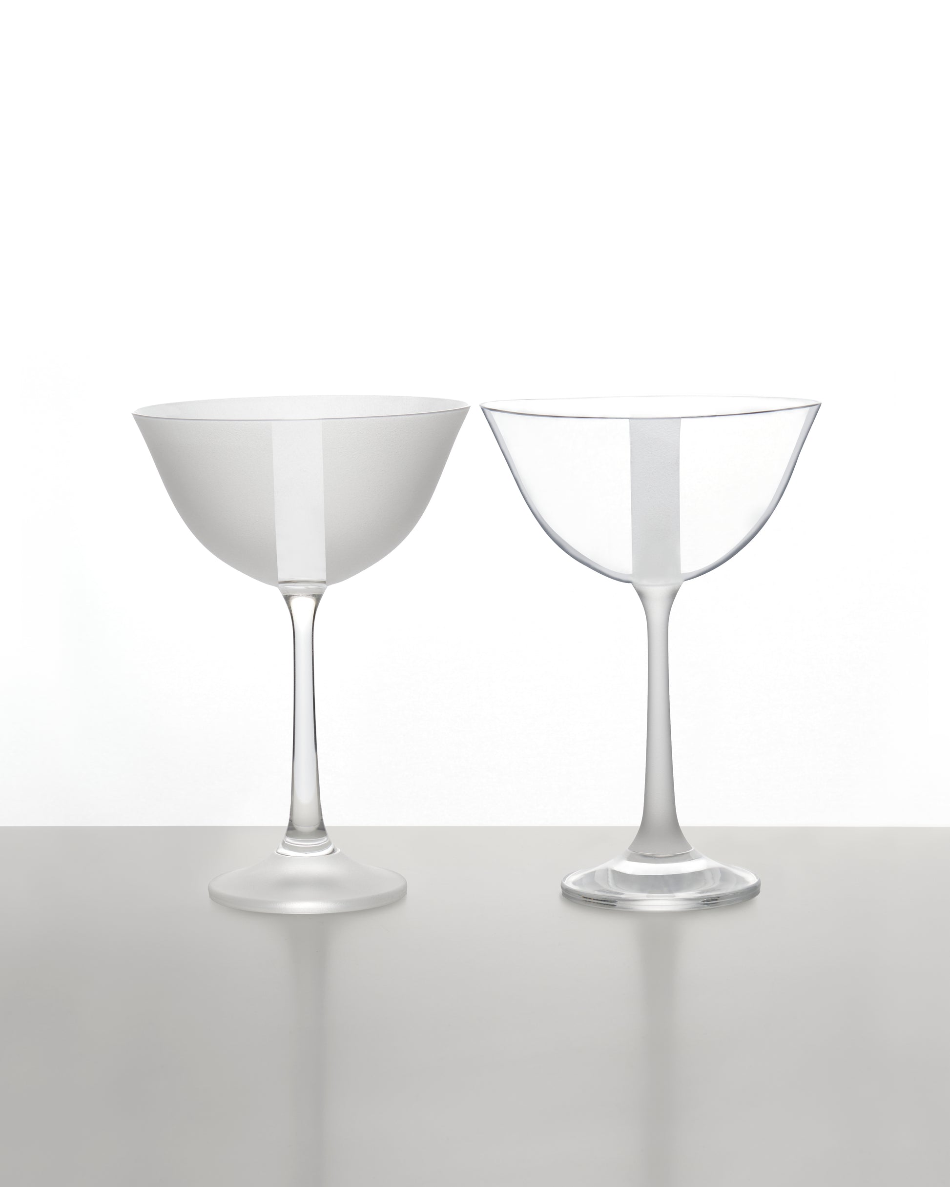 Scarpa glasses are made from lightweight crystal glass, specially sourced from the Czech Republic. They are shaped using a distinct sandblasting technique that gives them their unique surface texture.